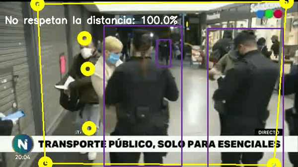 - Detect persons in the frame with yolov3 and project the points in bird’s eye view.
